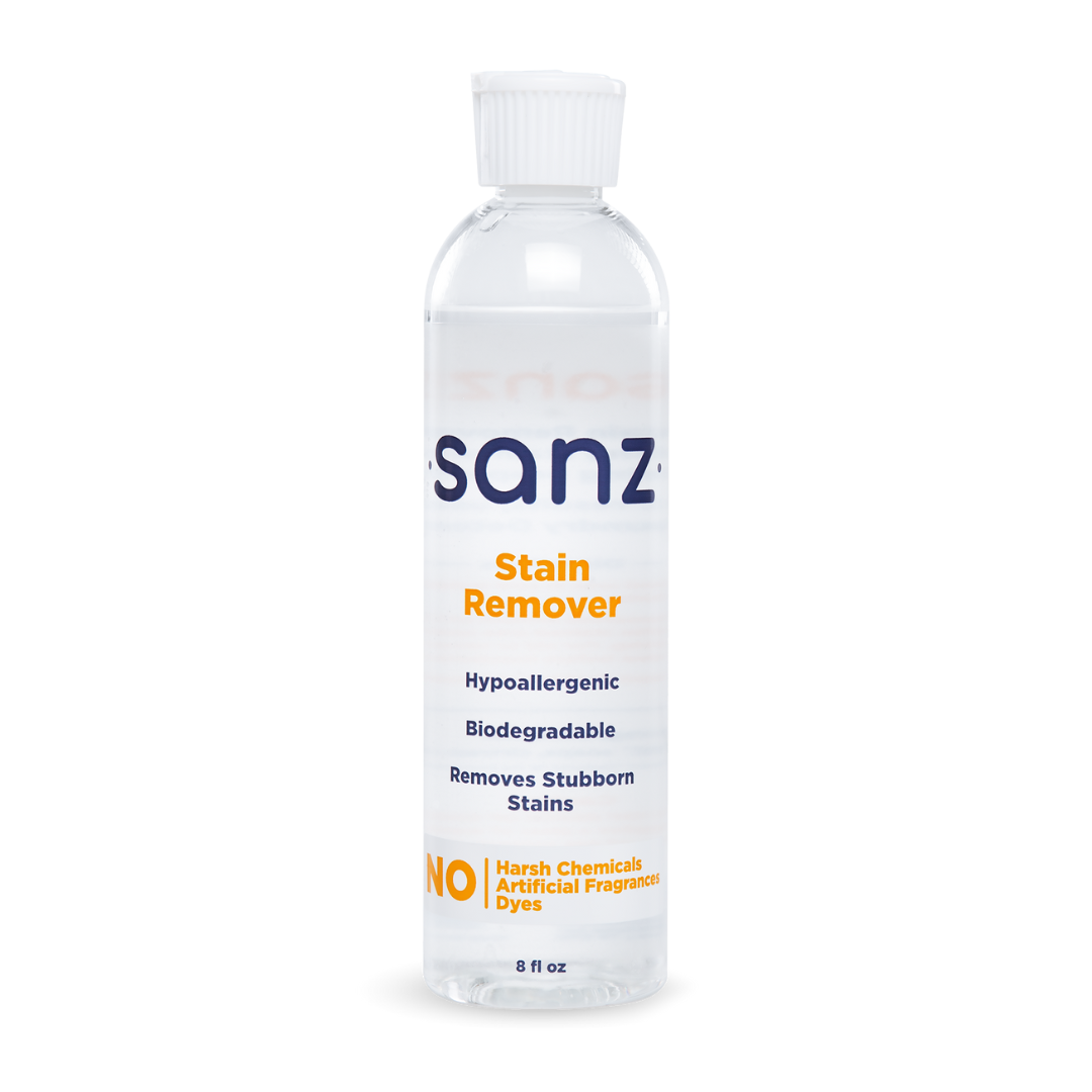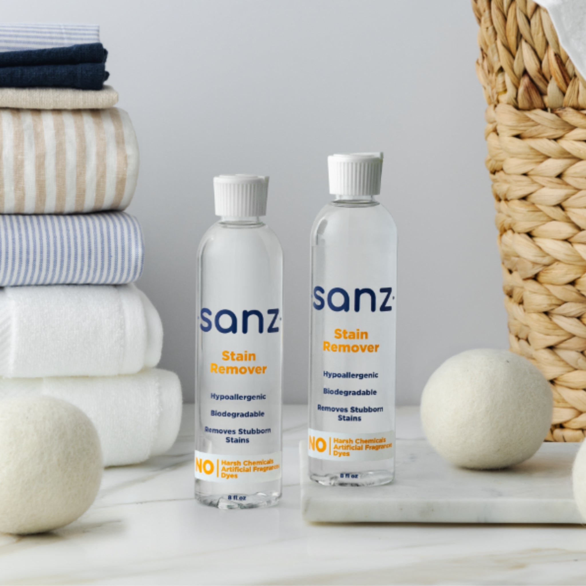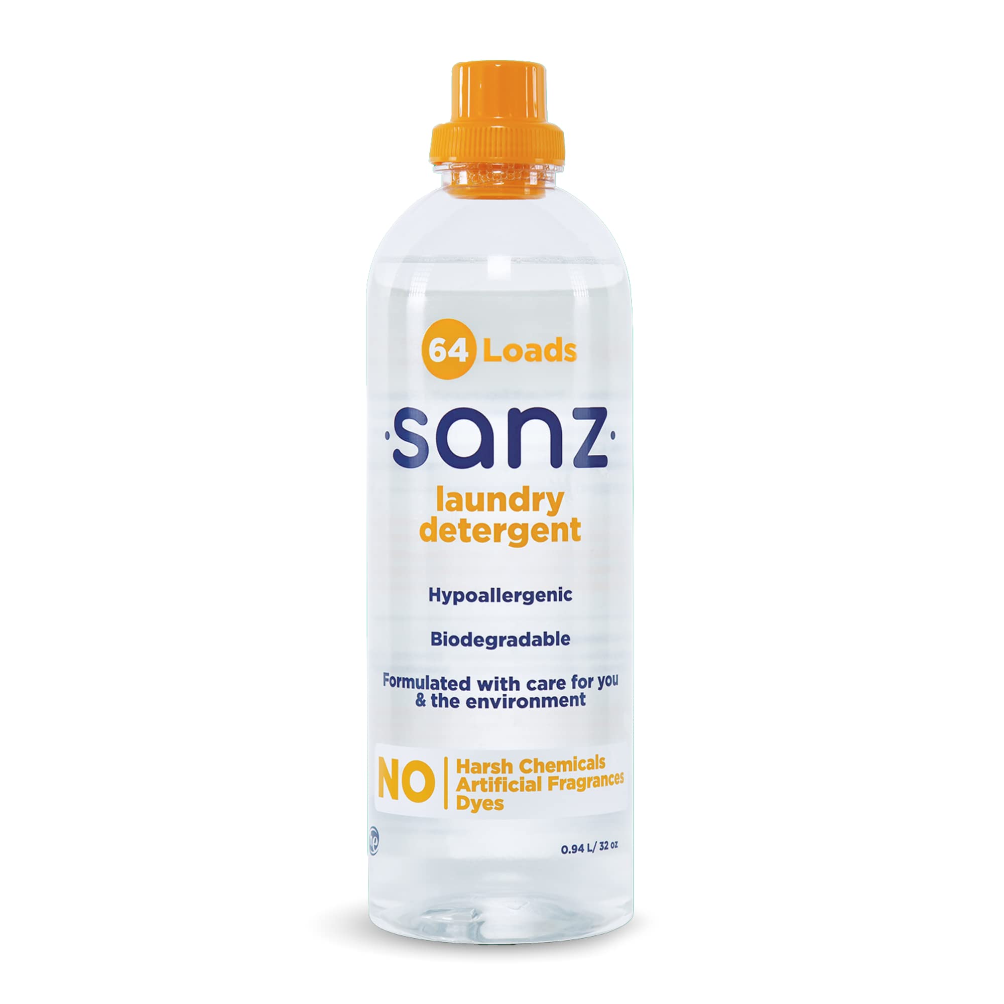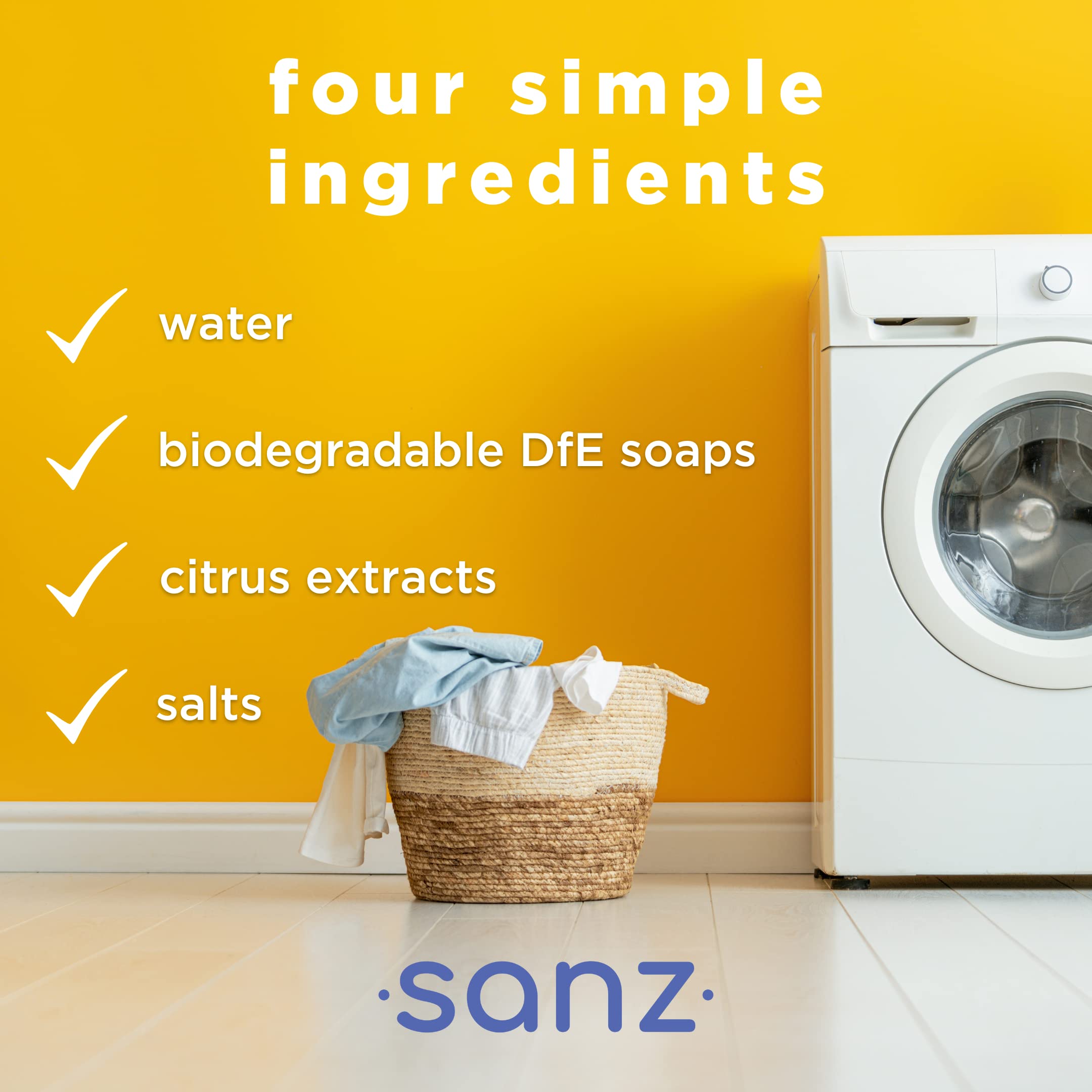 SANZ is a powerful and hypoallergenic laundry detergent that removes stubborn odors and stains without using harsh chemicals and without leaving a residue. SANZ preserves the integrity of all of your machine washable fabrics, is safe for all ages, and out-performed leading conventional detergents in 3rd party independent consumer product testing with only FOUR simple, holistic ingredients (water, biodegradable DfE soaps, citrus extracts, and salts).
